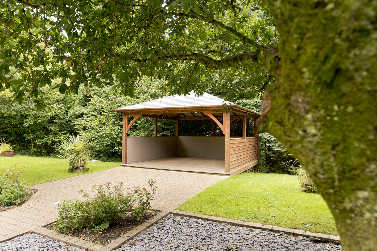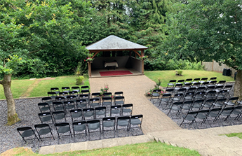 There are two areas which are licensed by Devon County Council. Most choose to have the ceremony under the pagoda in our beautiful gardens. There is outdoor seating for 100 guests and a temporary shelter is available in the event of poor weather, which can be erected near the pagoda. In winter you may prefer to use our function room for the ceremony. This has two paved areas adjacent where guests can gather whilst we rearrange the room for a reception afterwards.