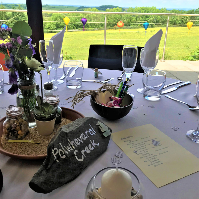 There are two areas which are licensed by Devon County Council. Most choose to have the ceremony under the pagoda in our beautiful gardens. There is outdoor seating for 100 guests and a temporary shelter is available in the event of poor weather, which can be erected near the pagoda. In winter you may prefer to use our function room for the ceremony. This has two paved areas adjacent where guests can gather whilst we rearrange the room for a reception afterwards.